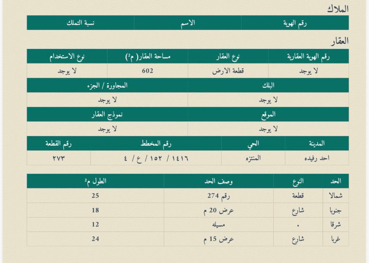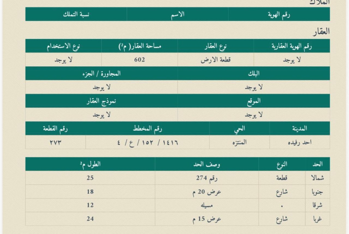 المساحه 602 م على زاويه شارع 20 م جنوبي و شارع 15 م غربي مستويه